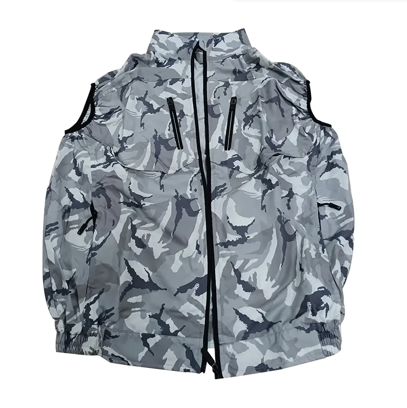 ชุดเครื่องปรับอากาศที่มีแขนยาวลายพรางใช้ประโยชน์จากการก่อสร้างไหล่กลวงที่เป็นเอกลักษณ์และระบบพัดลมแบบบูรณาการเพื่อเร่งการระเหยของเหงื่อและกระจายความร้อนอย่างมีประสิทธิภาพ การออกแบบนี้ไม่เพียง แต่ช่วยเพิ่มความสะดวกสบายทางความร้อน แต่ยังรักษาความแห้งกร้านของร่างกายที่ดีที่สุดซึ่งช่วยลดความเสี่ยงของการเจ็บป่วยที่เกี่ยวข้องกับความร้อนเช่นโรคหลอดเลือดสมอง รูปแบบสีลายพรางเพิ่มองค์ประกอบของการใช้งานจริงต่อต้านคราบและการผสมผสานเข้ากับสภาพแวดล้อมที่หลากหลายตั้งแต่สถานที่ทำงานกลางแจ้งไปจนถึงการดำเนินงานทางยุทธวิธี